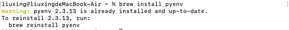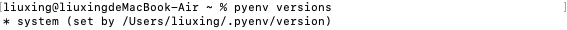 pyenv rehash # 在进行安装、删除指定python版本后使用,更新版本管理数据库