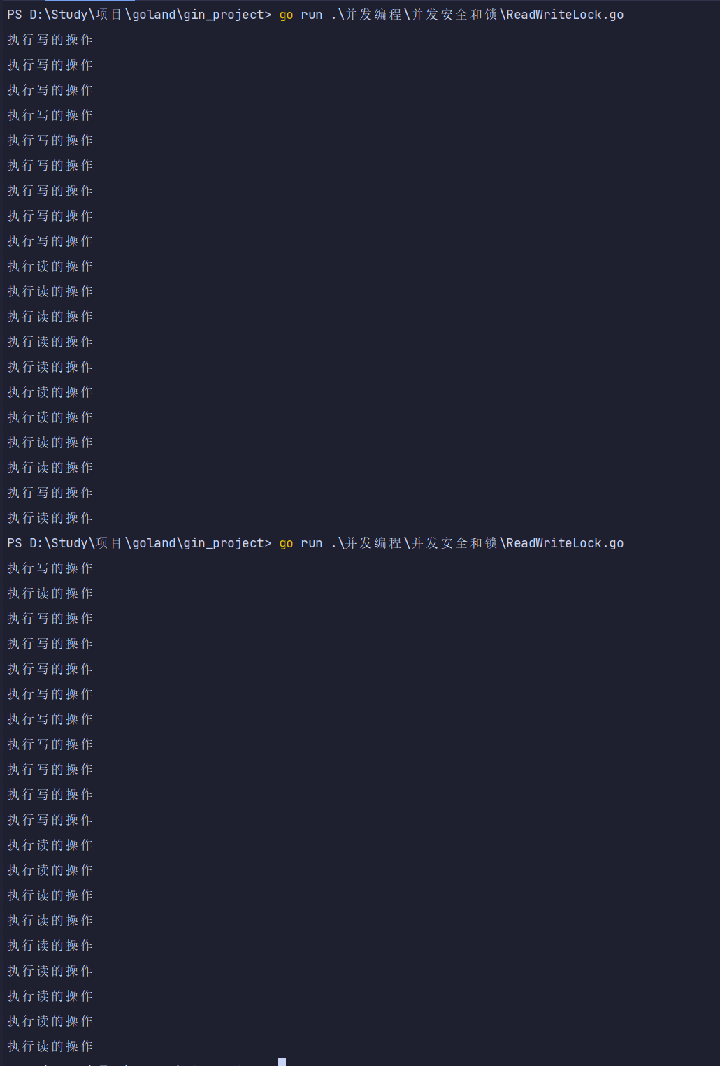 goroutine获取写锁之后,其他的goroutine无论是获取读锁还是写锁都会等待。