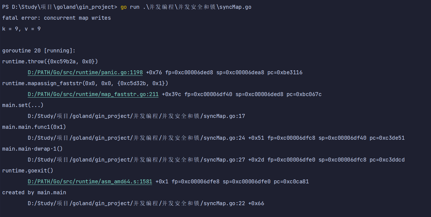 - 因此golang 出于安全的考虑,抛出致命错误:fatal error: concurrent map writes。