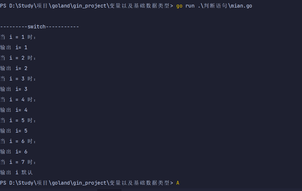 fmt.Printf("当 i = %d 时:\n", i)