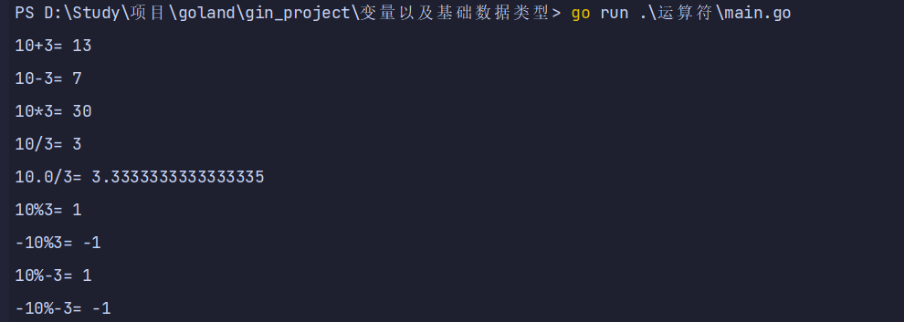 fmt.Println("10/3=", 10/3) //10/3= 3