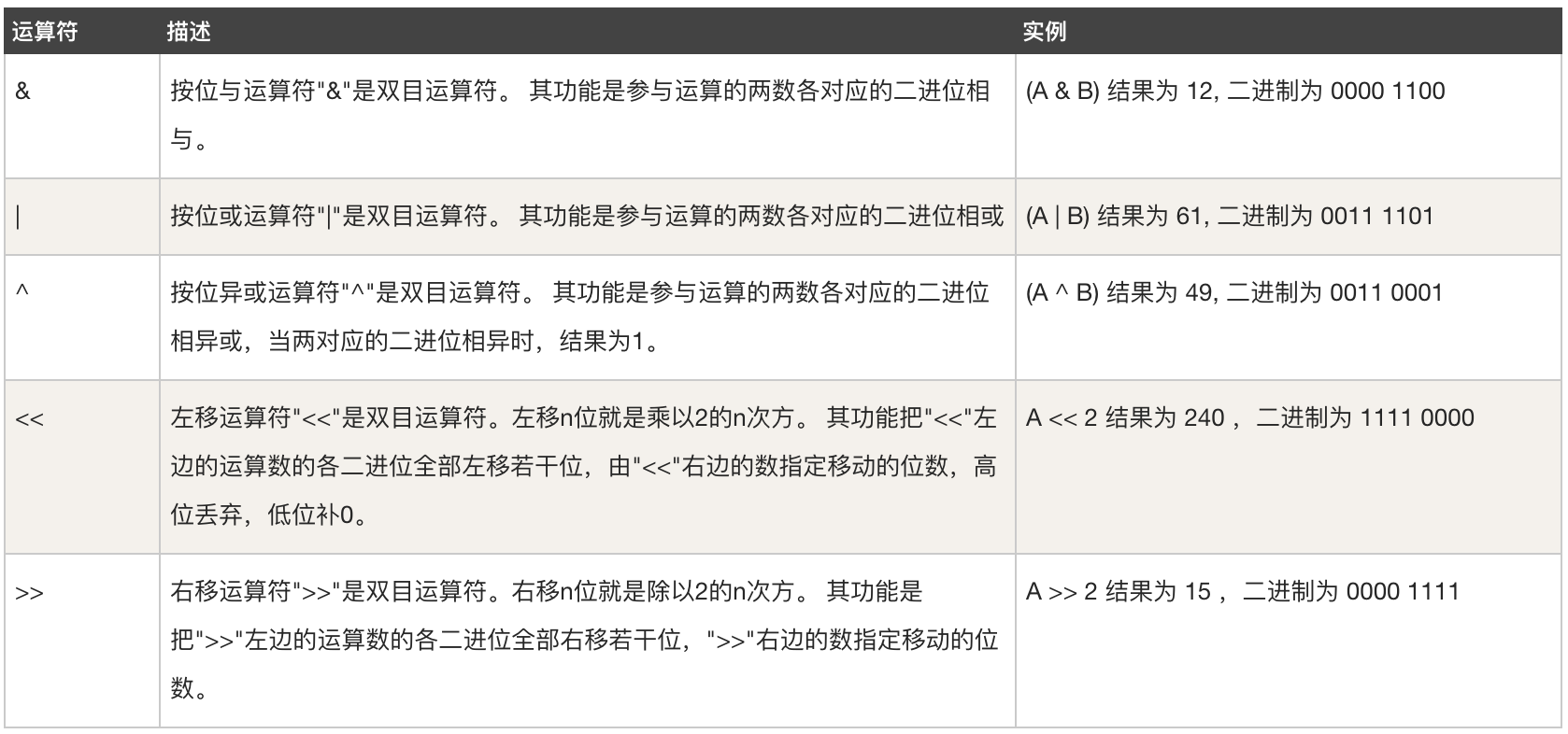 | 十进制 | 二进制 | | --- | ---- | | 0 | 0 | | 1 | 1 | | 2 | 10 | | 3 | 11 | | 4 | 100 | | 5 | 101 | | 6 | 110 | | 7 | 111 | | 8 | 1000 | | 9 | 1001 | | 10 | 1010 | | ... | ... |