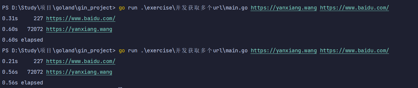 6.用main函数来接收所有fetch函数传回的字符串,可以避免在goroutine异步执行还没有完成时main函数提前退出。