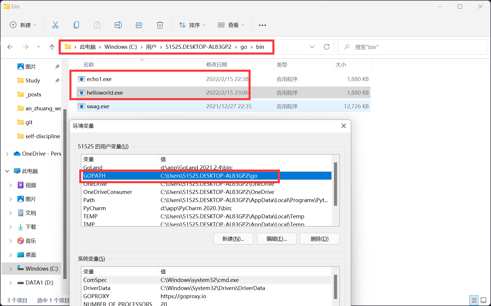 下载的可执行程序会放在$GOPATH/bin/helloworld目录