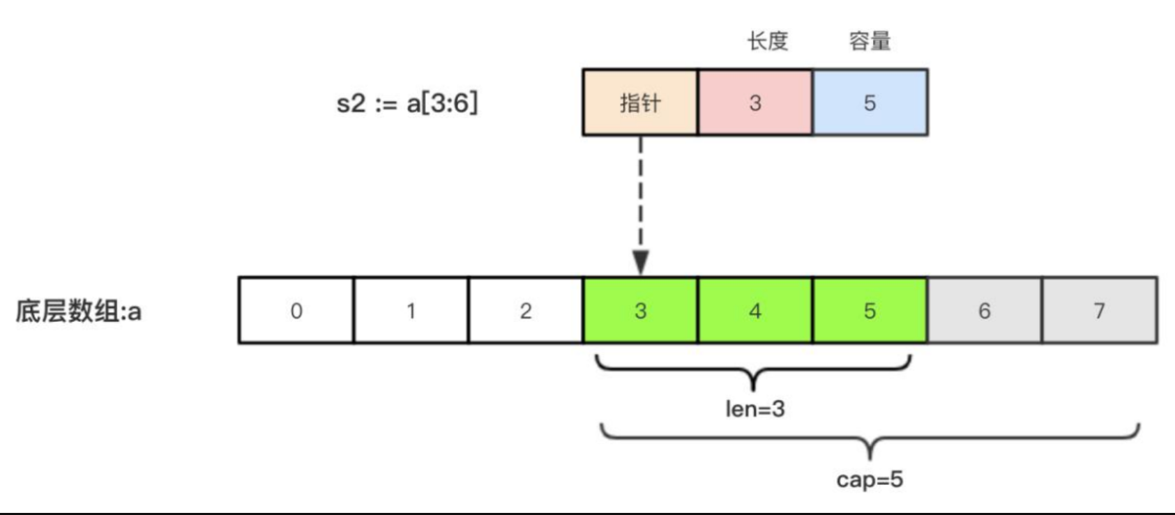 - 容量并不会影响当前元素的个数,所以 len(a)返回 2,cap(a)则返回该切片的容量。