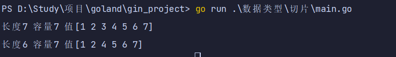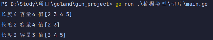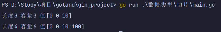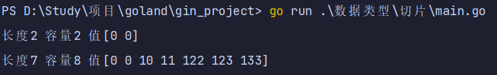 fmt.Printf("长度%v 容量%v 值%v \n", len(a), cap(a), a)
