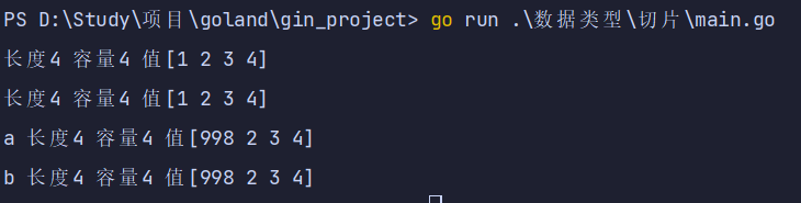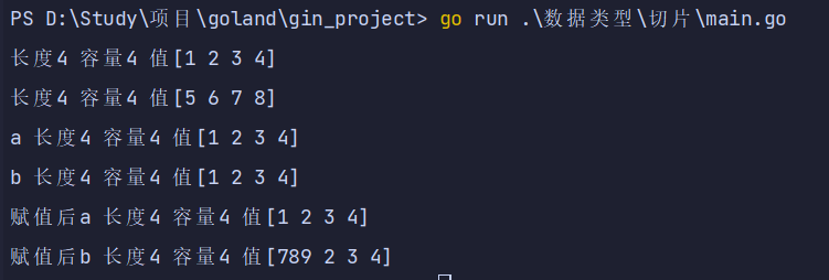 fmt.Printf("赋值后b 长度%v 容量%v 值%v \n", len(b), cap(b), b)