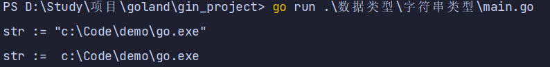 fmt.Println("str := \"c:\\Code\\demo\\go.exe\"") // str := "c:\Code\demo\go.exe"