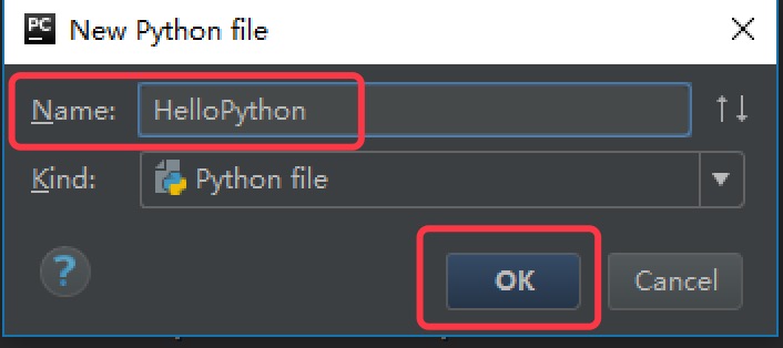 在弹出的对话框中输入的文件名HelloPython,点击OK,表示创建一个Python程序的文本文件,文本文件后缀名默认.py