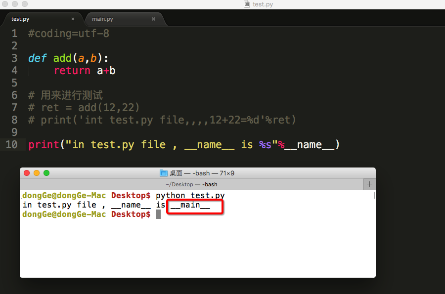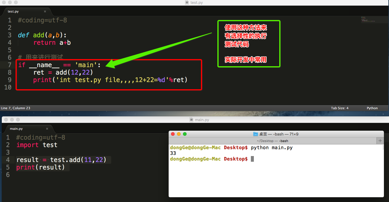 print('int test.py file,,,,12+22=%d'%ret)如果此时,在其他py文件中引入了此文件的话,想想看,测试的那段代码是否也会执行呢!